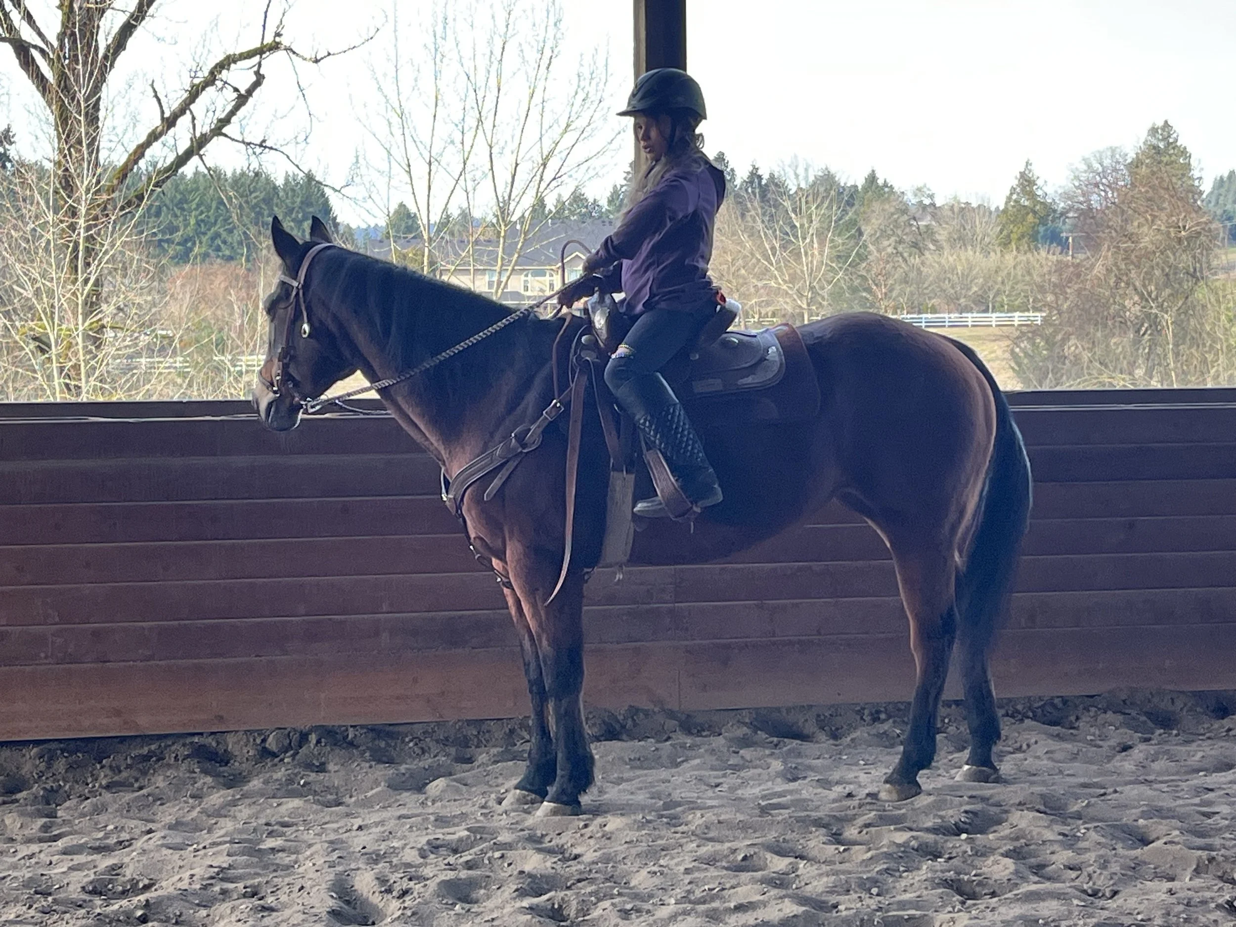 A 20 year old AQHA ranch horse, sunset always feels like we need to get to the next spot. She is our horse who loves to march everywhere she goes. While she is incredibly patient being groomed and loved on, she is all about work when under saddle.