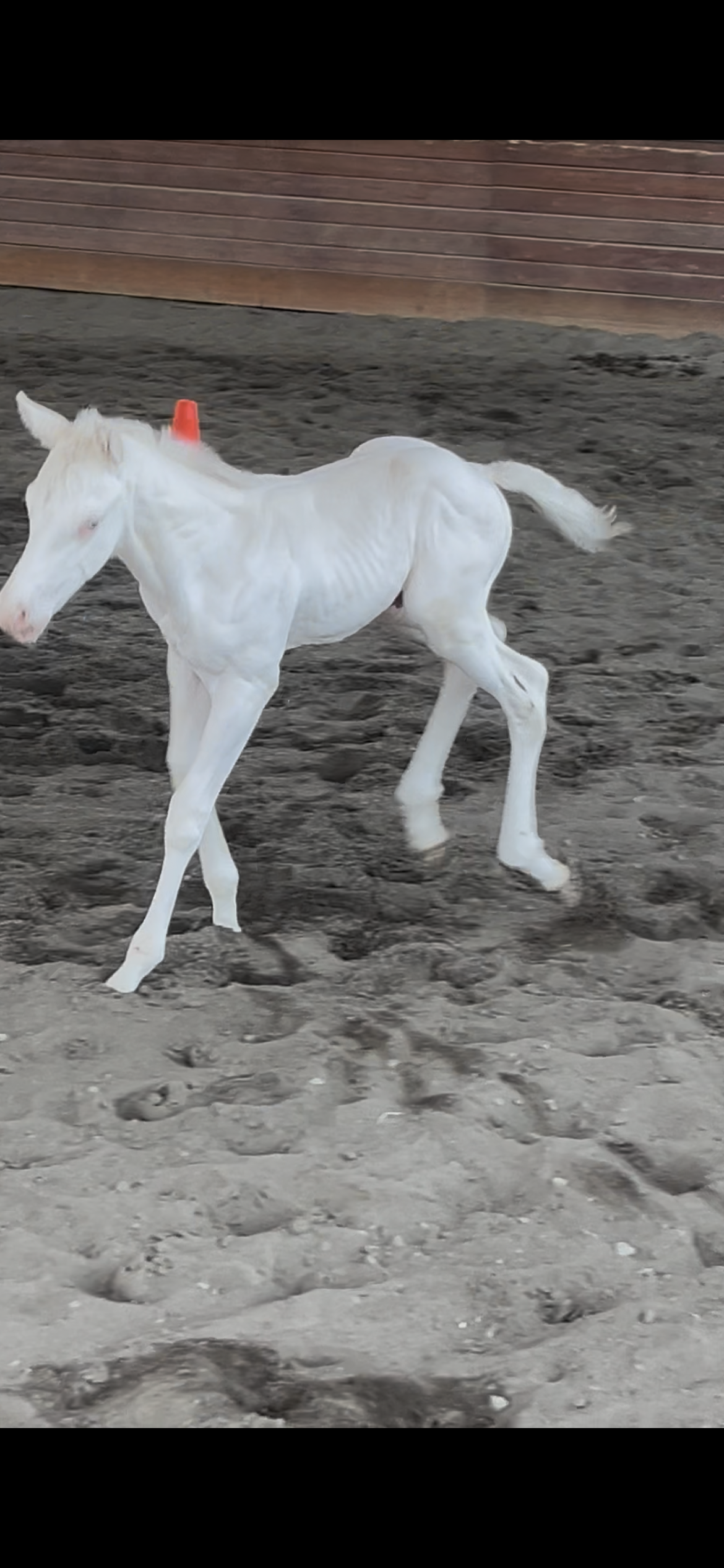 Also born in June 2025, our famous little Leche had quite the start to life. Born without any pigment, this little guy had a pretty rough start, then lost his mom tragically before he was even ready to wean. While he is deaf, we love him so much here and are constantly entertained by his shenanigans.